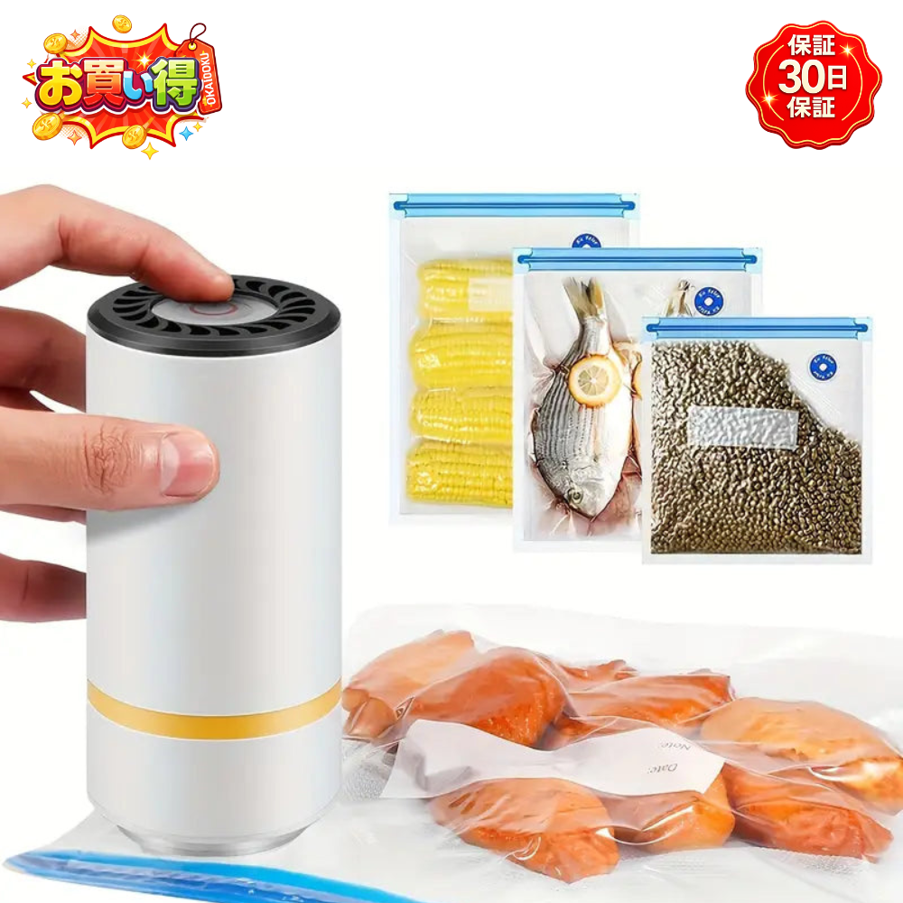 ワンタッチで数秒で食品を真空保存! -